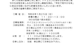 - 「新春の集い」ご案内 ※参加希望の方は、別紙お申込み書では無く、各地区班長さん・地区委員さん・町会役員へご連絡をお願い致します。