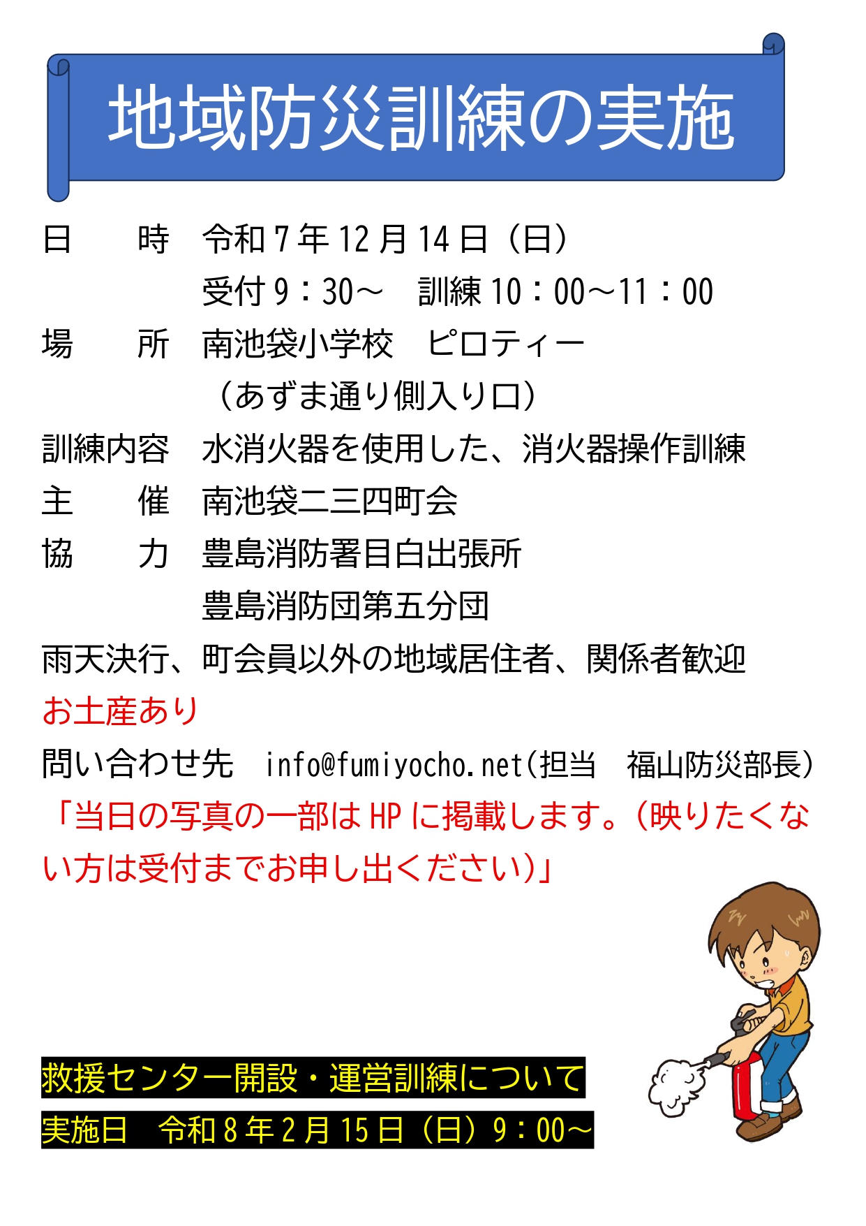 12月14日(日) 南池袋小学校において防災訓練を実施いたしました。